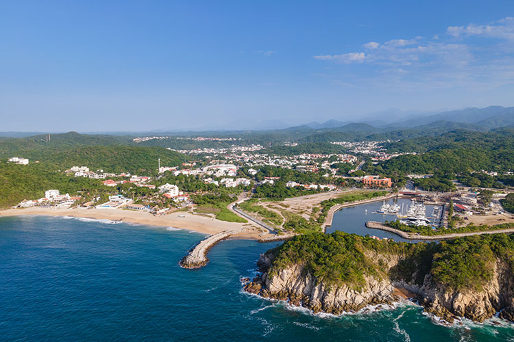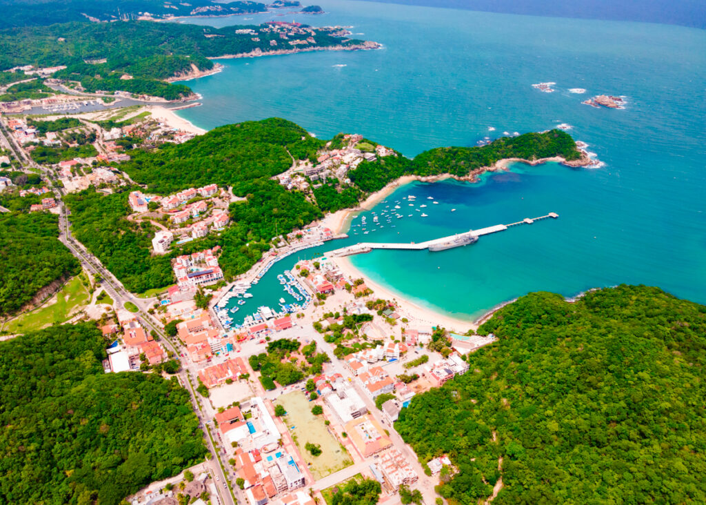 This bay offers all essential services: transportation, accommodations, banks, restaurants, shopping centers, markets, an open-air theater, and cafés. If you enjoy exploring, just a few kilometers from the beaches you’ll find mountains, waterfalls, jungle landscapes, and coffee farms—or you can take a road trip to Oaxaca’s capital, rich in culture, art, and traditions.